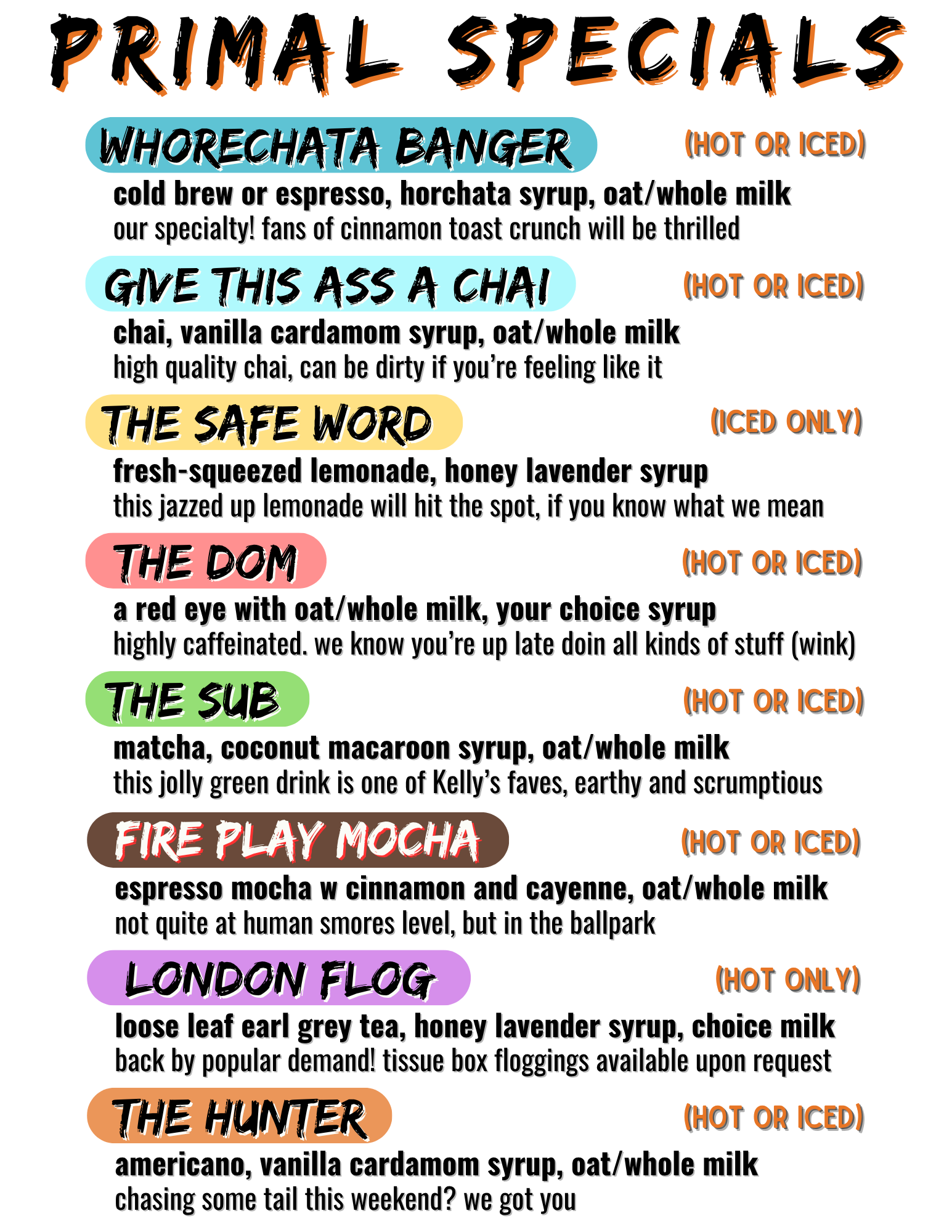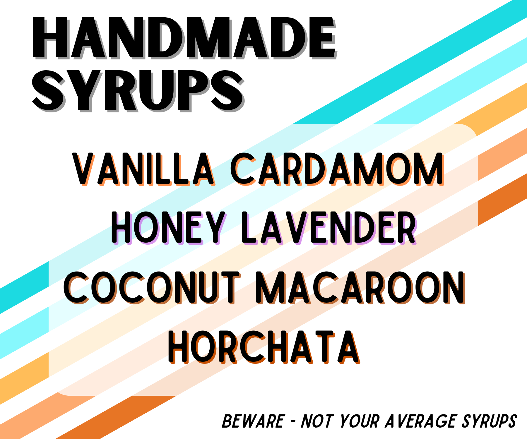 All our syrups are handmade and vegan, and we rotate flavors regularly